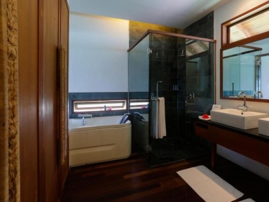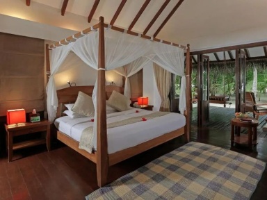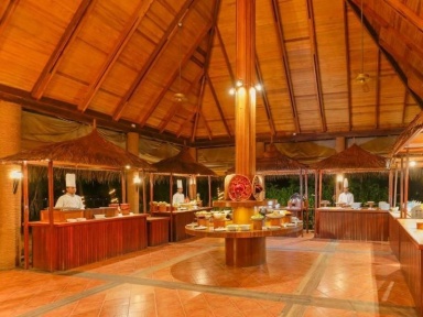 , что добавляло уюта и уединенности. Обратили внимание, что все тут ходят босиком, даже на завтрак обед и ужин. То есть обстановка в отеле расслабленная, нет никакого шума, движухи, все, чтобы побыть наедине с собой или с семьей. Жена ходила на йогу, вставала в 6 утра, ей там очень понравилось, прямо на рассвете занятия. Сервис - просто песня. Все на высшем уровне, то есть ты не успеешь нажать кнопку "Убрать номер", а персонал уже у ваших дверей. Официантов ни о чем не надо просить, они сами все всегда предложат, а если нет каких-то приборов или воды, то замечают это за километр и сразу сами приносят. Еда: нет ничего приевшегося, каждый день новые угощения, причем разные кухни. И важно: была постоянная возможность есть свежие морепродукты каждый день на гриле.