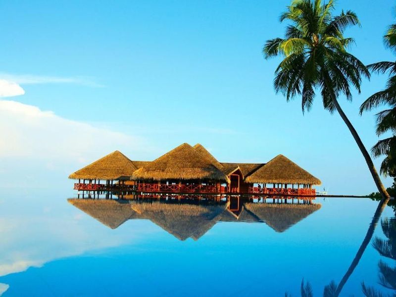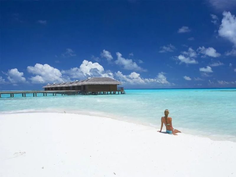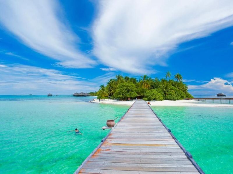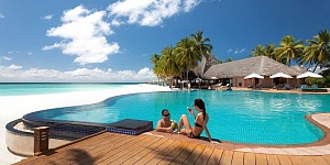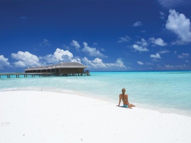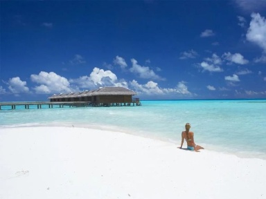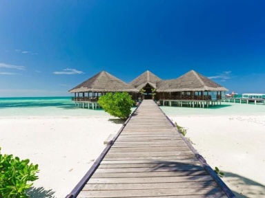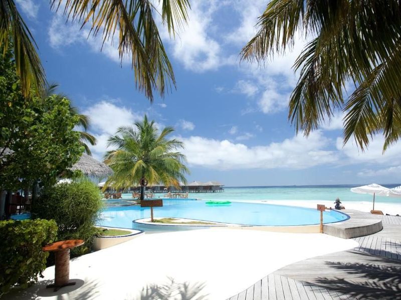 Итак, сам курорт описывают, как “Затерянный в Индийском океане”. Он находится на частном острове, до столицы Мале - 400 км. Расположено местечко на атолле Гаафу Даалу. Первое, что бросилось в глаза, так это изобилие зелени и белый, как на картинках, песок.